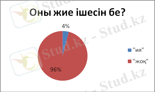 Мен өз сыныптастарымнан сауалнама алып, зерттеу жолдарын бастадым. Сыныпта 25 оқушы. Сауалнама қорытындысы диаграмма ретінде берілген.