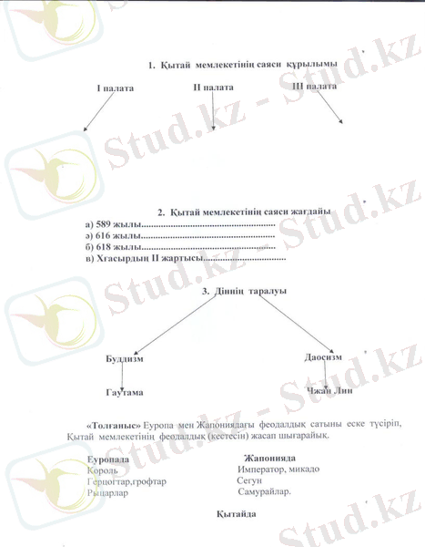 Тақырыбы: «Орта ғасырлардағы Қытай мемлекеті,