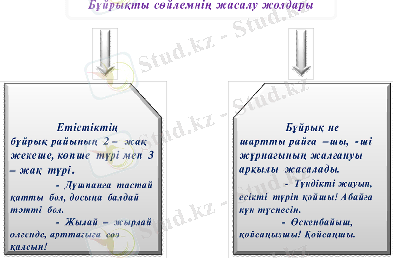 Берілген сөйлемдердің мағыналарын ашу арқылы оқушылар бұйрықты сөйлемнің мәнін ашып айтады.
