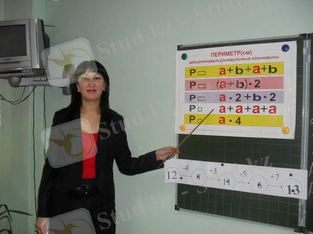 Сабақтың көрнекілігі: геометриялық фигуралар, жіп, формула жазылған плакат.