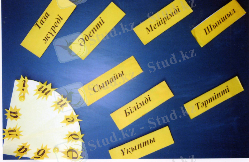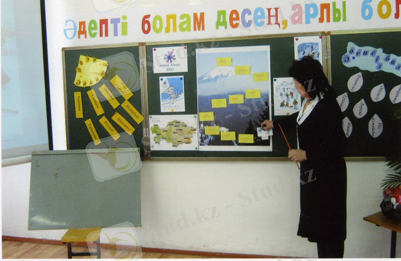 Көрнекілігі: суреттер, сызбалар, нақыл сөздер жазылған плакаттар.