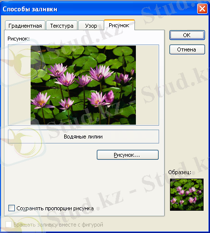 6. Способы заливки терезесінің төмөнгі бөлігінде Рисунок пунктін тандаңыз.
