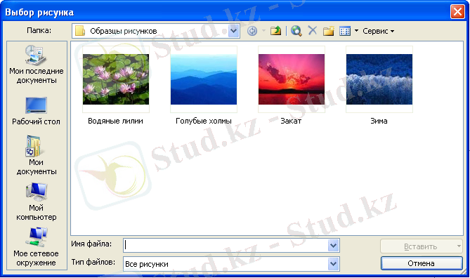 - Выбор рисунка терезесінде сендерге сурет файлына жолды көрсету керек.