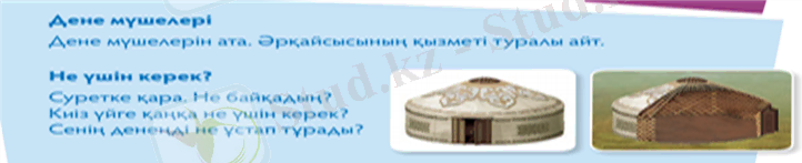 Оқушыларға саусақтарын, басын, шынтақтарын ұстап көруге ұсыныс жасау