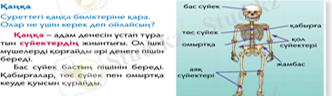 қаңқа бөліктері мен атауларын білетін боласың.