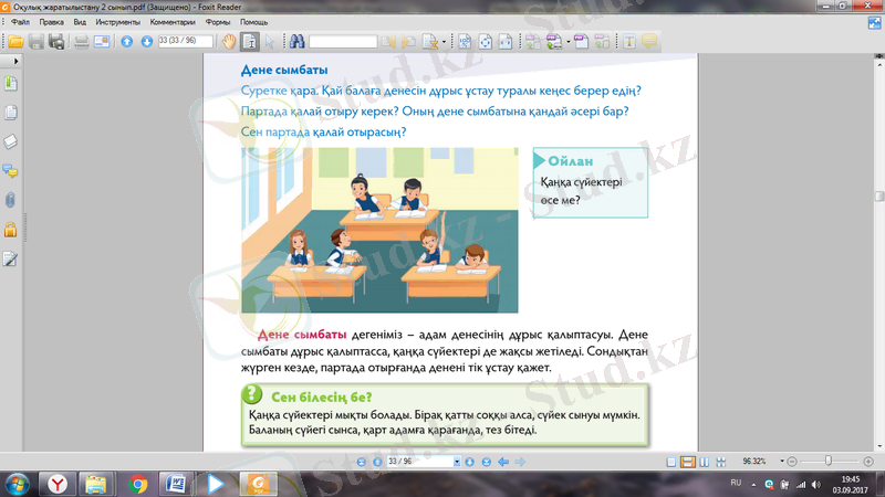 2-сынып: Адам қаңқасының құрылысы мен қызметі, дене сымбатын сақтау