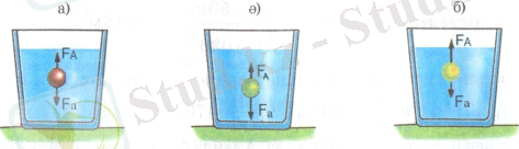 𝐹а>𝐹𝐴 болса, онда дене сұйықтыққа батып кетеді.