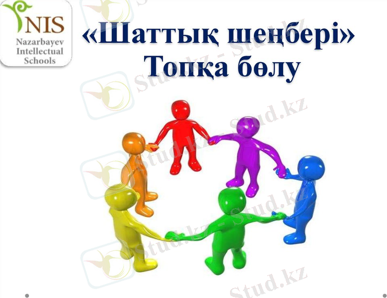 Топқа бөлу. «Қазақы дастарқан» ( қазақтың ұлттық тамақтары бейнеленген үлестірме қағаздар арқылы(олар ет, сүт, ұн өнімдері) «Бесбармақ», «Қымыз», «Бауырсақ» 3 топқа бөлініп отырады. )