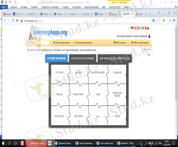 «Ой қозғау» әдісі. https://learningapps. org/ сайттан бір типті элементтерді жинақтау арқылы, тақырыпты ашамын.