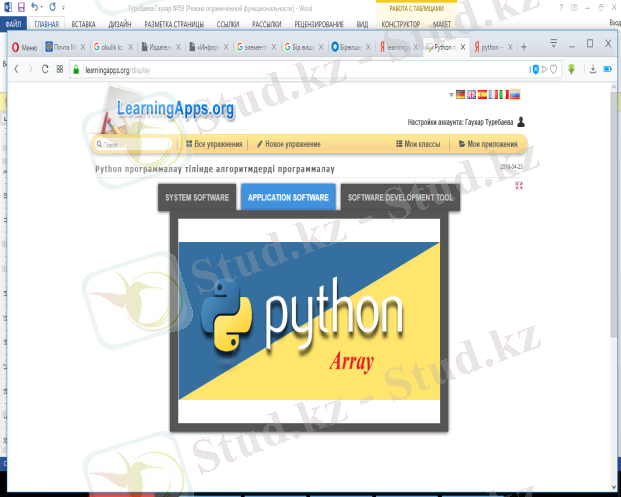 Диалог /жазбаша жұмысқа қажетті пайдалы фразалар топтамасы: Python, array, massif, byte, for, randomize термин сөздері бір өлшемді массивтерді программалау кезінде қолданылады