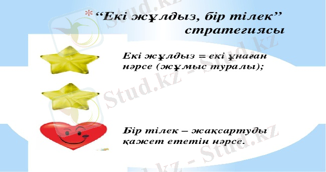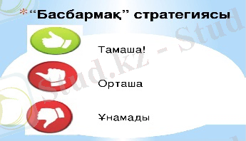 Оқушылар бір-бірінің жұмысын тыңдап, бағдаршам түстеріне сәйкес сигналдық карточкаларды көрсету арқылы бағалайды.