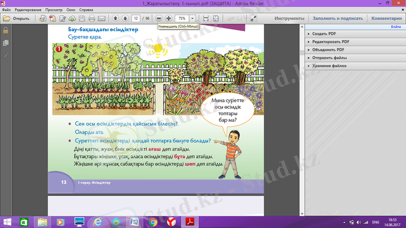 мүмкіндік береді. Суретпен жұмыс. Оқушыларға топпен жұмыс жасау беріледі. Бұл тапсырмада 2 топтағы оқушыларға жаңа тақырып аясында ақпарат беріледі. 1 топ осы суреттегі өсімдіктердің аттарын жазады.