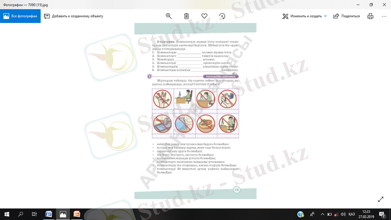 - компьютерді ұзақ уақыт бойы отырудың зиянды әсерлерден қорғану тәсілдерін тиімді қолдану жолдарын біледі.