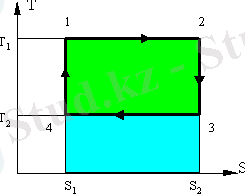 Жүйеге берілетін жылу мөлшері: Q 1 =T 1 ×(S 2 -S 1 ) - 1-2-S 2 -S 1 -1 тікбұрыштың ауданы (көк және жасыл түспен боялған аймақ) .
