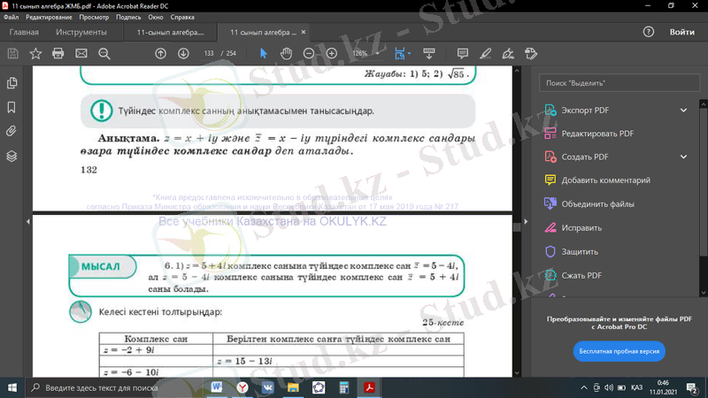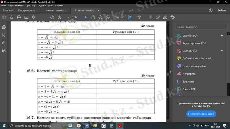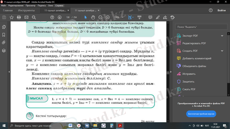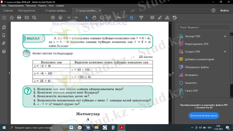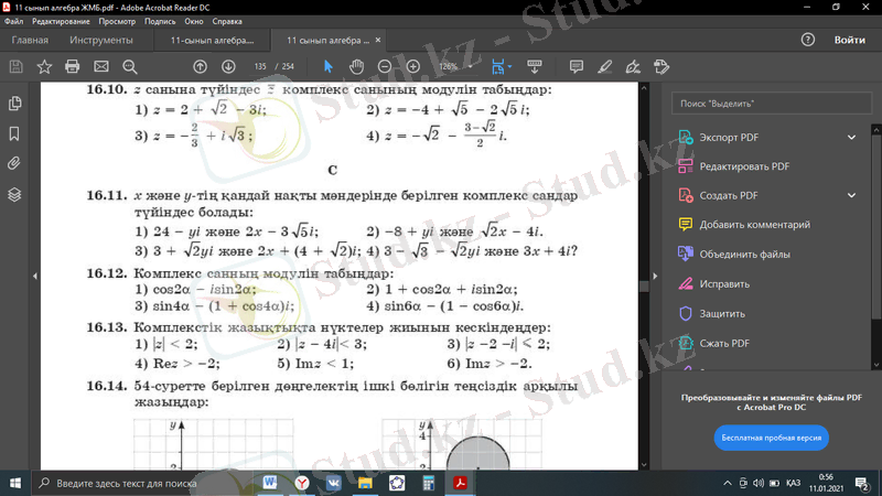 11. 1. 1. 1-комплекс санның және модулінің анықтамаларын білу;