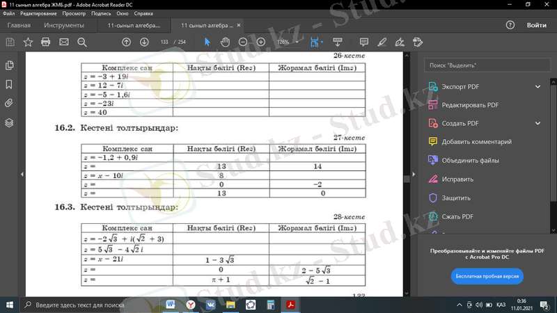 Комплекс сандар тақырыбы бойынша 11-сынып сабақ жоспары мен рефлексиясы