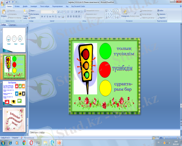 Қ. Б: «Бас бармақ» әдісі бойынша бірін-бірі бағалайды, сұрақтары болса, ортада талқылайды.