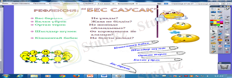 Әр топ өзінің атауы бойынша қысқаша мәлімет береді. Оқушыларды мадақтау мақсатында смайликтер таратылады.