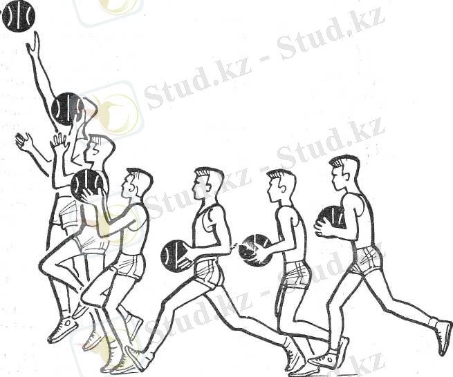 - Допты кедергілерден алып жүріп екі адым жасап допты торға лақтыру.
