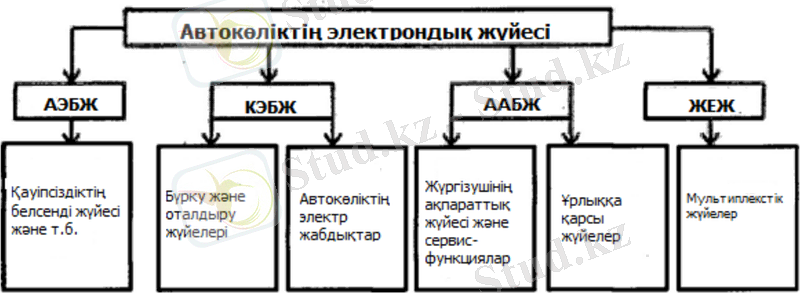 - АЭБЖ (ЭСУА) - автомобильдің электронды басқару жүйелері;