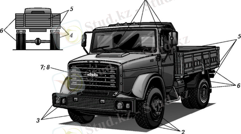 4. 4 -суреті. Жолға шығар алдында автомобильді бақылаулық қарап тексеру нүктелері (1 . . . 8)