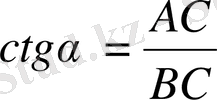α бұрышының котангенсі деп осы бұрышқа қарсы жатқан катеттің іргелес жатқан катетке қатынасын айтады және оны былай белгілейді: