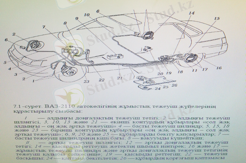 Сабақтың мақсаты: Тежеу жүйесін үйрену, бөлшектеу және жинау бойынша операцияларды орындау