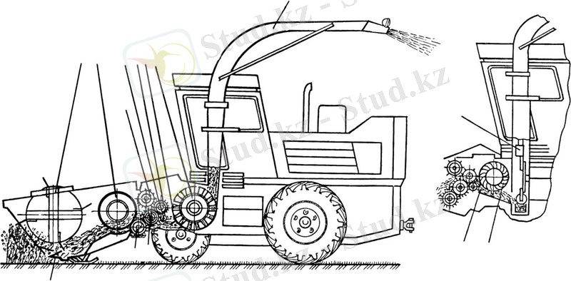 Жинағыш өздігінен жүретін ұсақтағышқа жалғанған.