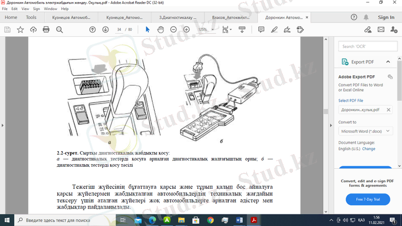 Атап өтетіні, осциллограф көмегімен бірінші және екінші кернеу тізбектерін диагностикалау механикалық таратқышты оталдыру жүйесін тексеру кезінде өте маңызды. Микропроцессорлық басқарылатын оталдыру жүйесін жөндеу жағдайында сканер көмегімен (2. 2-сурет) тестілеу мен «алмастыру» әдісін (бөлшектерді кейін жарамды бөлшектерге ауыстыру) біріктіруде айтарлықтай тиімділікке қол жеткізуге болады. __