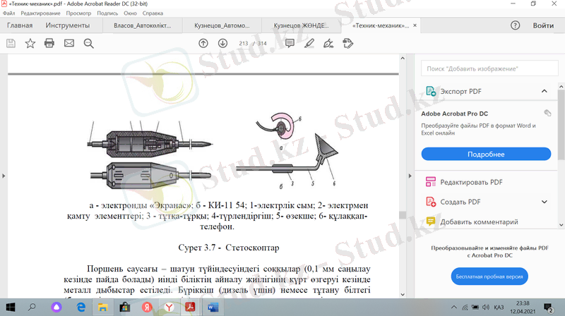 - Қосиінді - бұлғақты және газ таратушы механизмдердің техникалық жағдайы стетоскоптың көмегімен өалай анықтайды