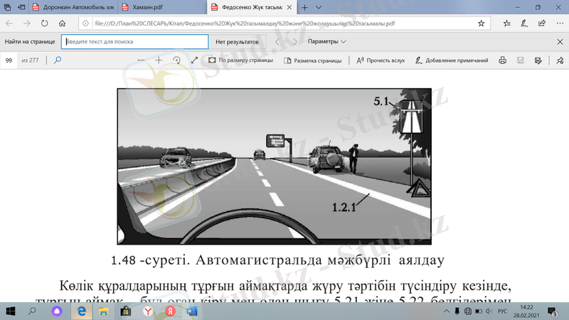 Мəжбүрлі аялдау кезінде көлік құралын жүру бөлігінің шегінен тыс шығарып, авариялық сигнал беруді қосу жəне кем дегенде 30 м арақашықтықта авариялық аялдау белгісін қою қажет (1. 48-суреті) .