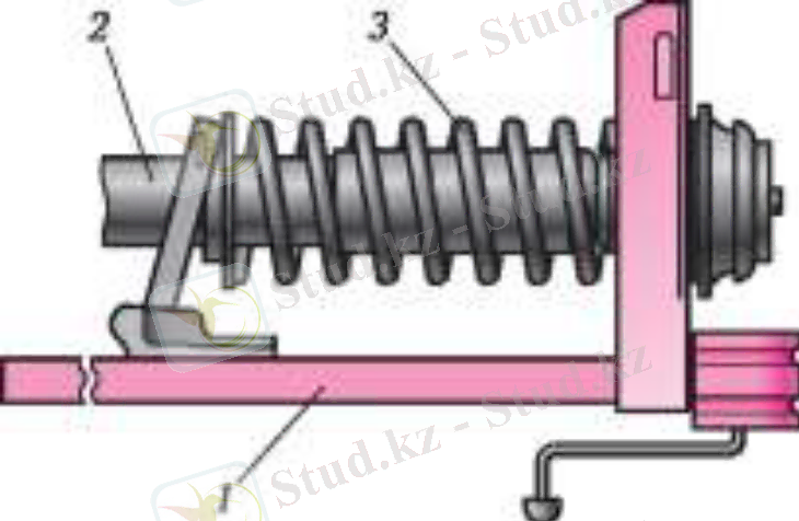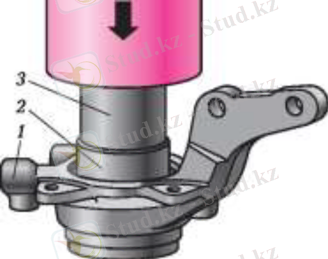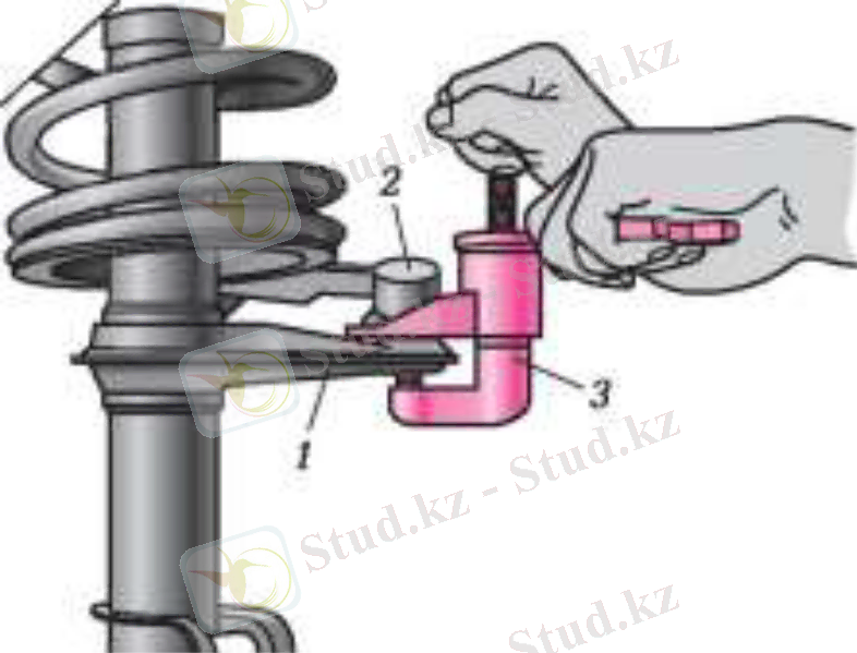 7. 5-сур. Аспа бағанасының бұрылу тетігінен рӛлдік тартылыстың шарлы топсасының саусағын сығып алу: 1 - бұрылу тетігі; 2 - тартылыстың шарлы топсасы; 3 - алынғыш