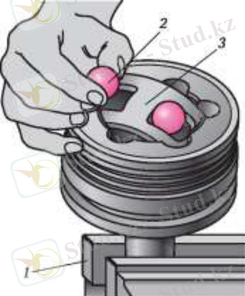 6. 40-сур. Сепаратордан шариктерді шығару : 1 - басқыштар; 2 - шарик; 3 - сепаратор