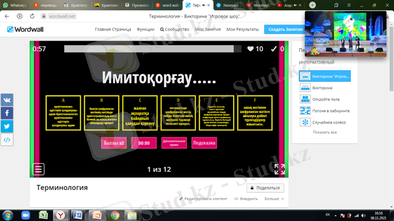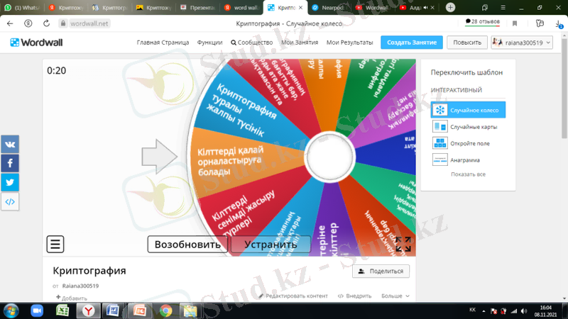 Үй жұмысын Wordwall сайтты арқылы сұрау