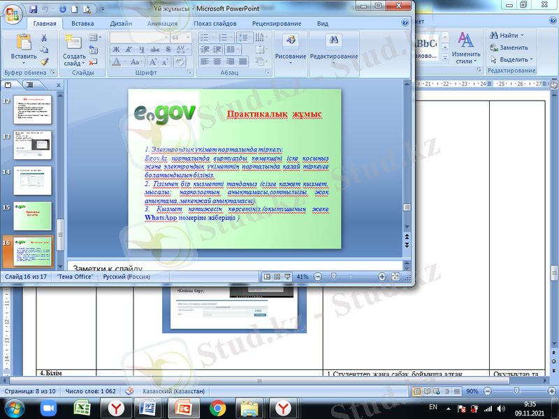 - Egov порталының қызметтерімен жұмыс істей білу.