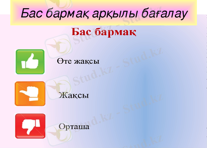 «Бас бармақ» әдісі арқылы топтар бір-бірін бағалайды