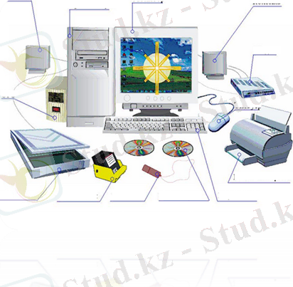 : монитор, жүйелік блок, пернетақта, тінтуір, принтер,