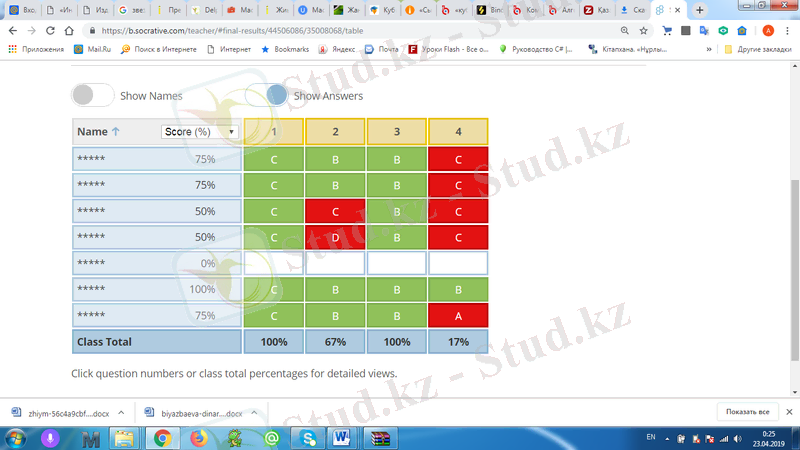 Балалардың сабақтың қаншалықты түсінгенін анықтау мақсатында Socrative программасы арқылы тест алу.