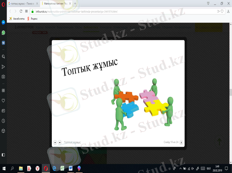 Оқушылардың қызығушылығы мен зейінін шоғырландыру мақсатында «Пазл» әдісі арқылы сурет қиындыларын құрастырады және 3 топға бірігеді: