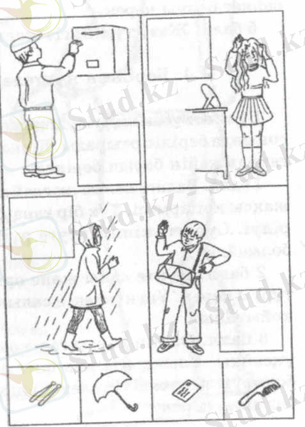 «Мына суреттерге жақсылап қарап, салынған фигураларды топ-топқа бөліп қой. Әр топқа бір-біріне ұқсайтын фигураларды біріктіресің. Фигуралардың атын атап және оны неге бір топқа біріктіргеніңді түсіндіріп бересің».