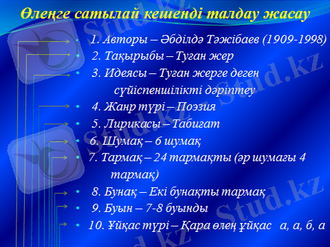 ІҮ. Өлеңнің құрылысына, көркем тіліне талдау.