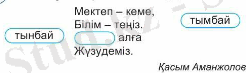 Өлеңді оқиды, бос орынға тиісті сөзді қойып жазады. Тынбай сөзінің мағынасын түсінеді.
