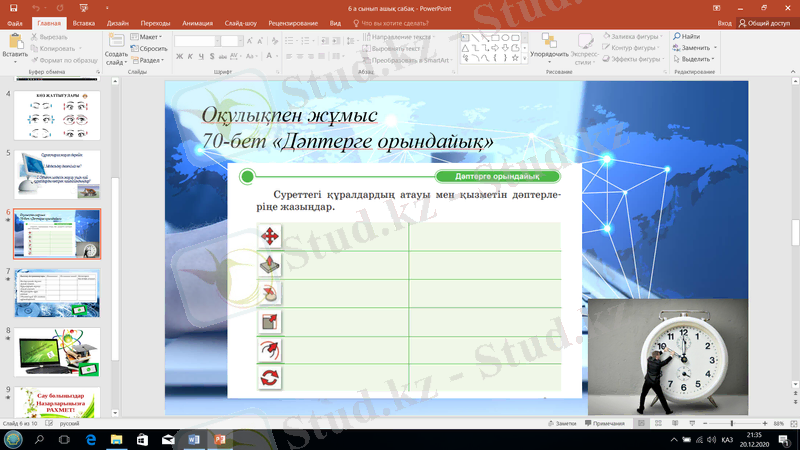/тапсырмаларды демонстрация арқылы көрсетеді/