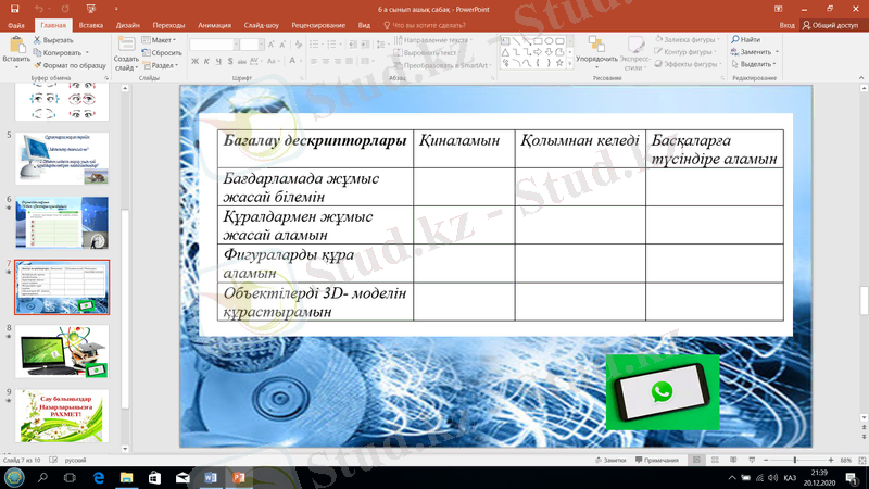 /орындаған тапсырмаларын whatsapp не Google Classroom арқылы мұғалімге жібереді/