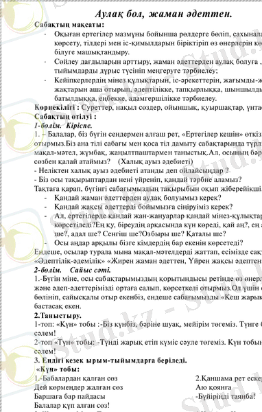 Бастауыш сыныптарға арналған әдеп пен ұлттық даналық тәрбие сағатының жоспары