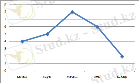 Әр түсті ойыншықтар жиынтығының 1-суретте берілген абсолюттік жиілігі полигонын қолданып,