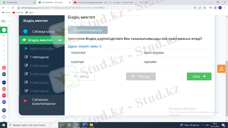 - 1-тапсырманы дұрыс орындайды;
