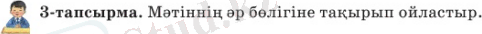 Түсіну. Топтық жұмыс. 3-тапсырма. Мәтіннің әр бөліміне тақырып ойластыр.