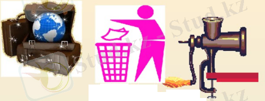 Бүгінгі тақырып бойынша алған керекті ақпараттарыңды шабаданға салыңдар (жазыңдар), бүгінгі сабақтағы керек емес болған, артық дүниені қоқыс жәшігіне салыңдар (жазыңдар) . Ал бүгінгі ақпараттың ішінде әлі оқуым керек, толықтыруым керек дегендері болса, еттартқышқа салыңдар (жазыңдар) .