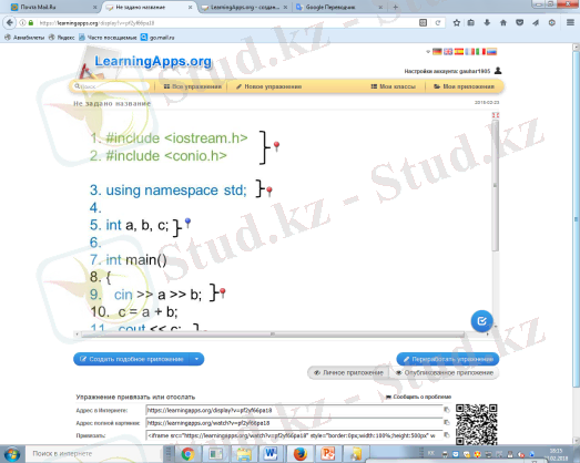 7. 3. 3. 2 сызықтық және тармақты алгоритмдерін программаны өңдеудің кіріктірілген ортасында (С/С++) жазу
